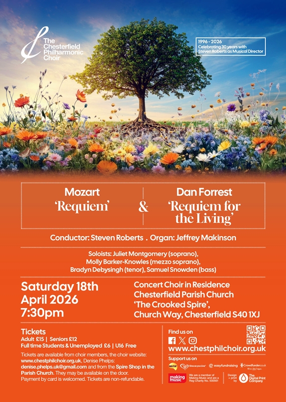 Saturday 18th April 2026 at 7:30pm. Venue - Chesterfield Parish Church, ‘The Crooked Spire’, Church Way, Chesterfield S40 1XJ